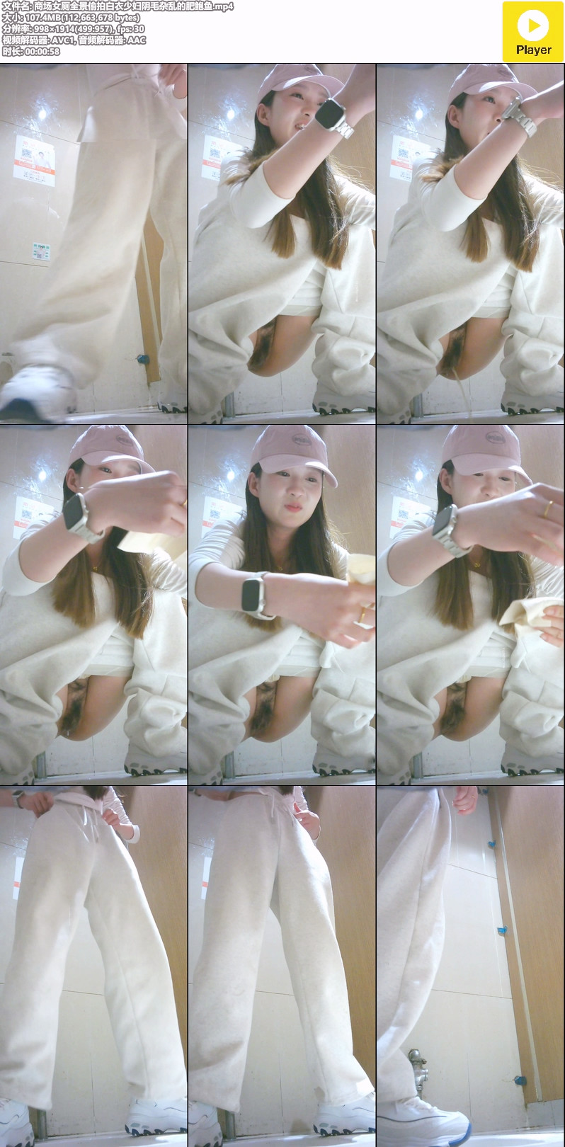 【影片名称】:商场女厕全景偷拍白衣少妇阴毛杂乱的肥鲍鱼