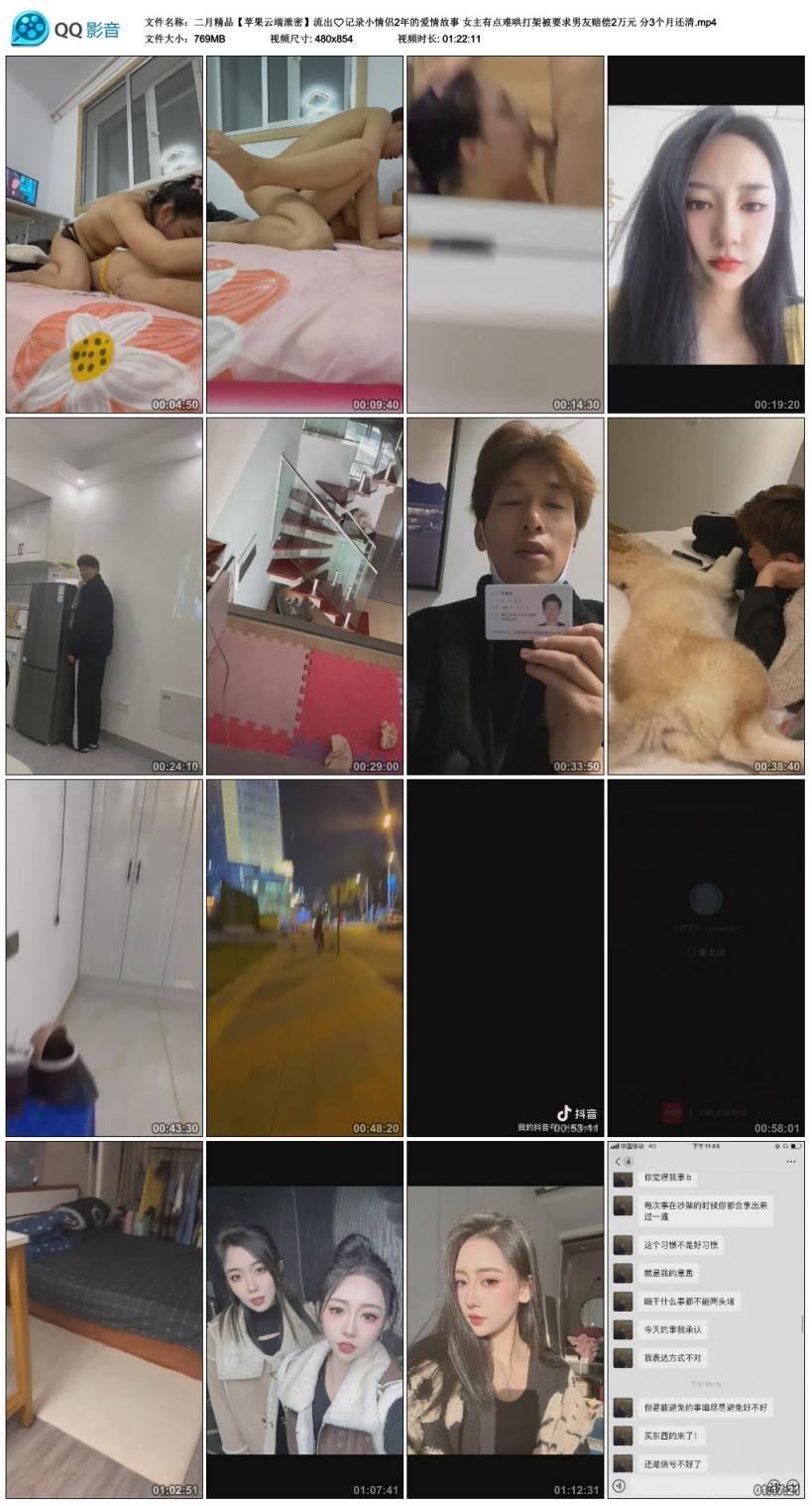【影片名称】:精品【苹果云端泄密】流出记录小情侣2年的爱情故事女主有点难哄打架被要求男友赔偿2万元分3个月还清